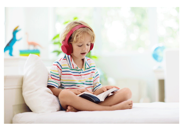 - Supports early and struggling readers. Combines text with professional narration.